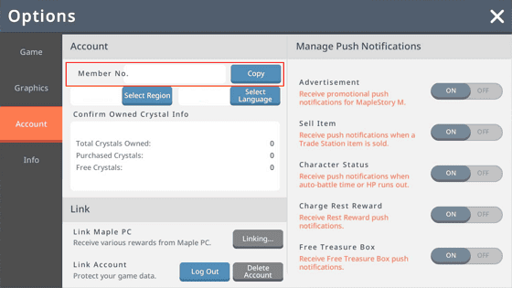 Enter your Maplestory M Member Code, Name and Server
